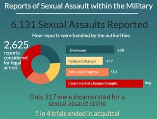 I have heard horrifying tales of women being raped, or sexually assaulted, or harassed and retaliated against if she had the gall to stick up for herself and report the abuse. One of the worst cases I heard of was the case of LaVena Johnson.