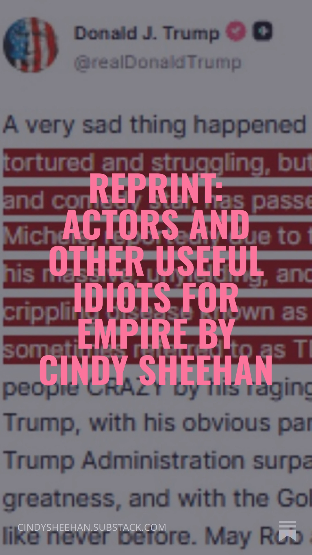 Cindy Sheehan’s Soapbox Newsletter is a reader-supported publication. To receive new posts and support my work, consider becoming a free or paid subscriber.
